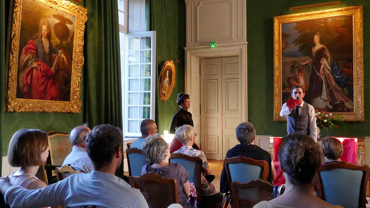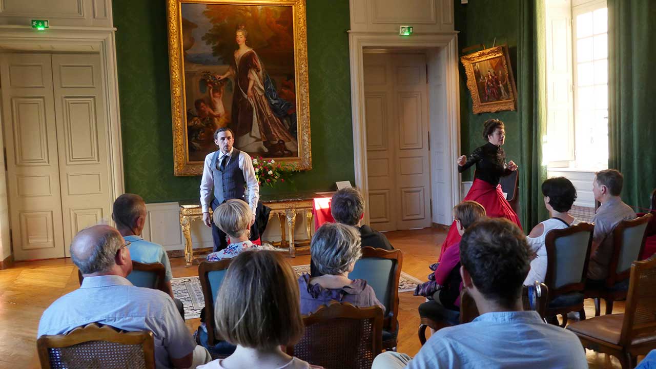 Samedi 17 juin à 20h30, la Compagnie Intersignes a donné une représentation de la pièce de théâtre “Les Rostand” dans le grand salon vert du château.