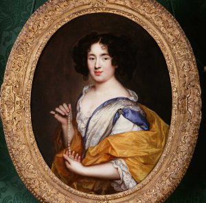 Assignée à résidence, Marie recevra en cadeau d’adieu ce collier de perles du roi, témoignage de leur passion. Pierre Mignard orientera le portrait sur son aspect mélancolique ; Marie tient ses perles dans sa main comme si elle y retenait son amour perdu.