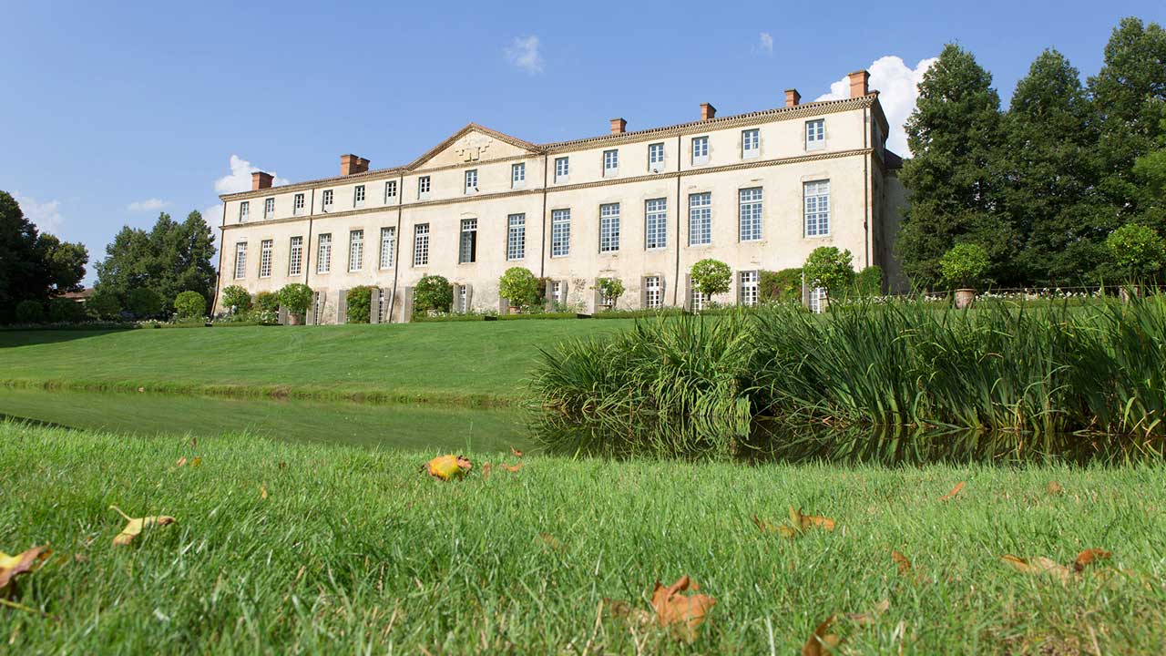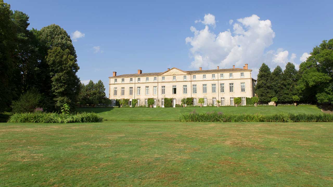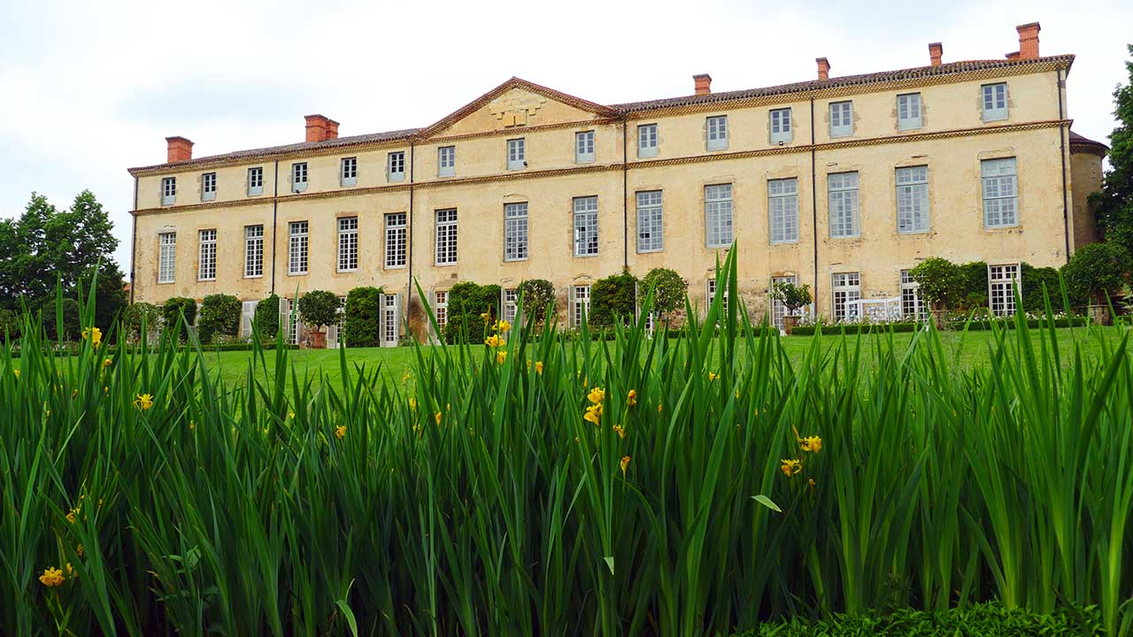 Le style “à l’anglaise” du parc, naturellement intégré à la campagne environnante, date de la fin du XVIIIe siècle. Auparavant, un dessin “à la française” de facture simple, en accord avec l’architecture du château, occupait toute la partie aujourd’hui engazonnée. A l’emplacement des rosiers, une balustrade limitait la terrasse ; au centre, un escalier en pierres à double volée de marches conduisait au niveau du jardin composé de petits compartiments géométriques avec un bassin circulaire au centre et un grand bassin au fond. Au-delà s’étendait un alignement d’arbres “en patte d’oie”. Sur la gauche un potager était ordonné dans le même esprit et, à droite, un verger. Après la Révolution, on supprima la balustrade et l’escalier, on creusa l’étang en ménageant une île; la terre extraite fut talutée contre la terrasse pour créer le plan incliné actuel, et les parterres de buis furent remplacés par du gazon. Des arbres de haute futaie subsistent encore près de la balustrade, à gauche de l’escalier.