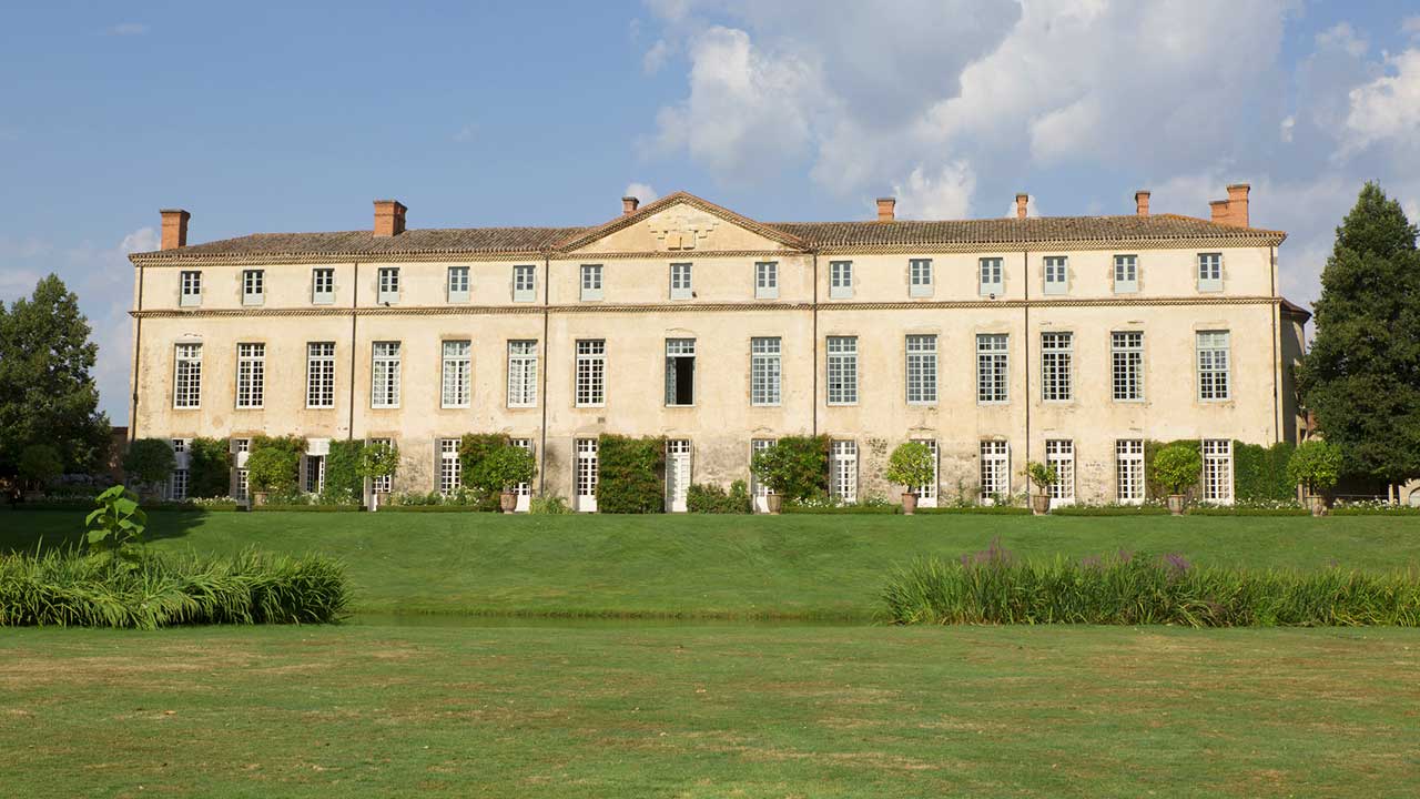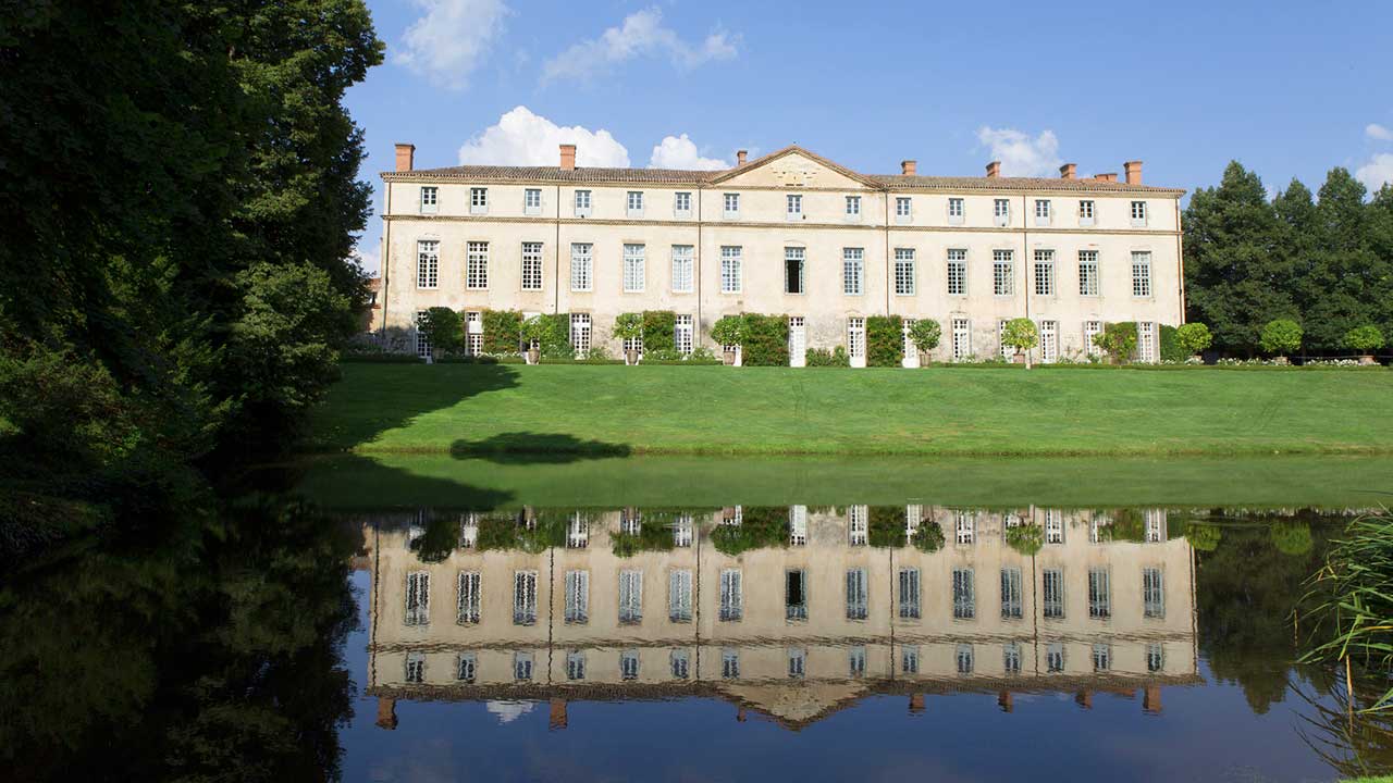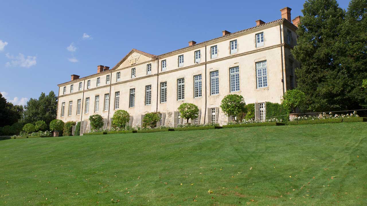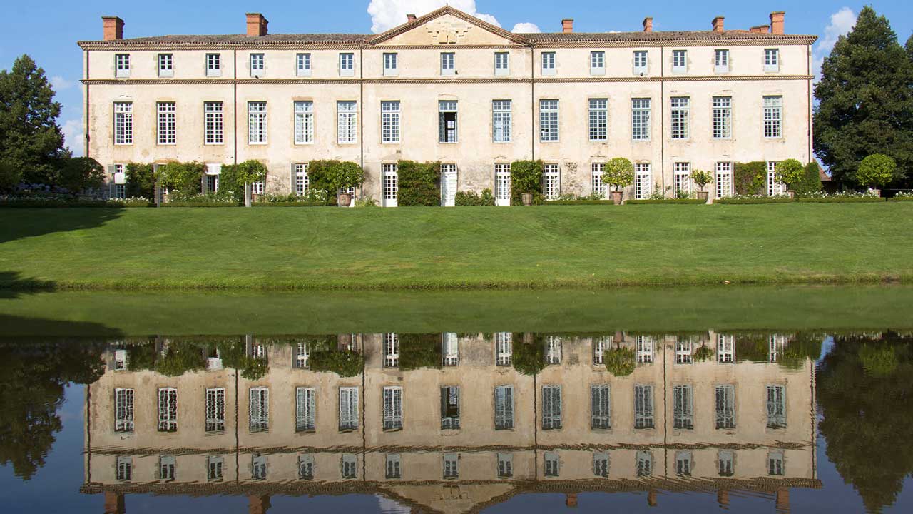 Le style “à l’anglaise” du parc, naturellement intégré à la campagne environnante, date de la fin du XVIIIe siècle. Auparavant, un dessin “à la française” de facture simple, en accord avec l’architecture du château, occupait toute la partie aujourd’hui engazonnée. A l’emplacement des rosiers, une balustrade limitait la terrasse ; au centre, un escalier en pierres à double volée de marches conduisait au niveau du jardin composé de petits compartiments géométriques avec un bassin circulaire au centre et un grand bassin au fond. Au-delà s’étendait un alignement d’arbres “en patte d’oie”. Sur la gauche un potager était ordonné dans le même esprit et, à droite, un verger. Après la Révolution, on supprima la balustrade et l’escalier, on creusa l’étang en ménageant une île; la terre extraite fut talutée contre la terrasse pour créer le plan incliné actuel, et les parterres de buis furent remplacés par du gazon. Des arbres de haute futaie subsistent encore près de la balustrade, à gauche de l’escalier.